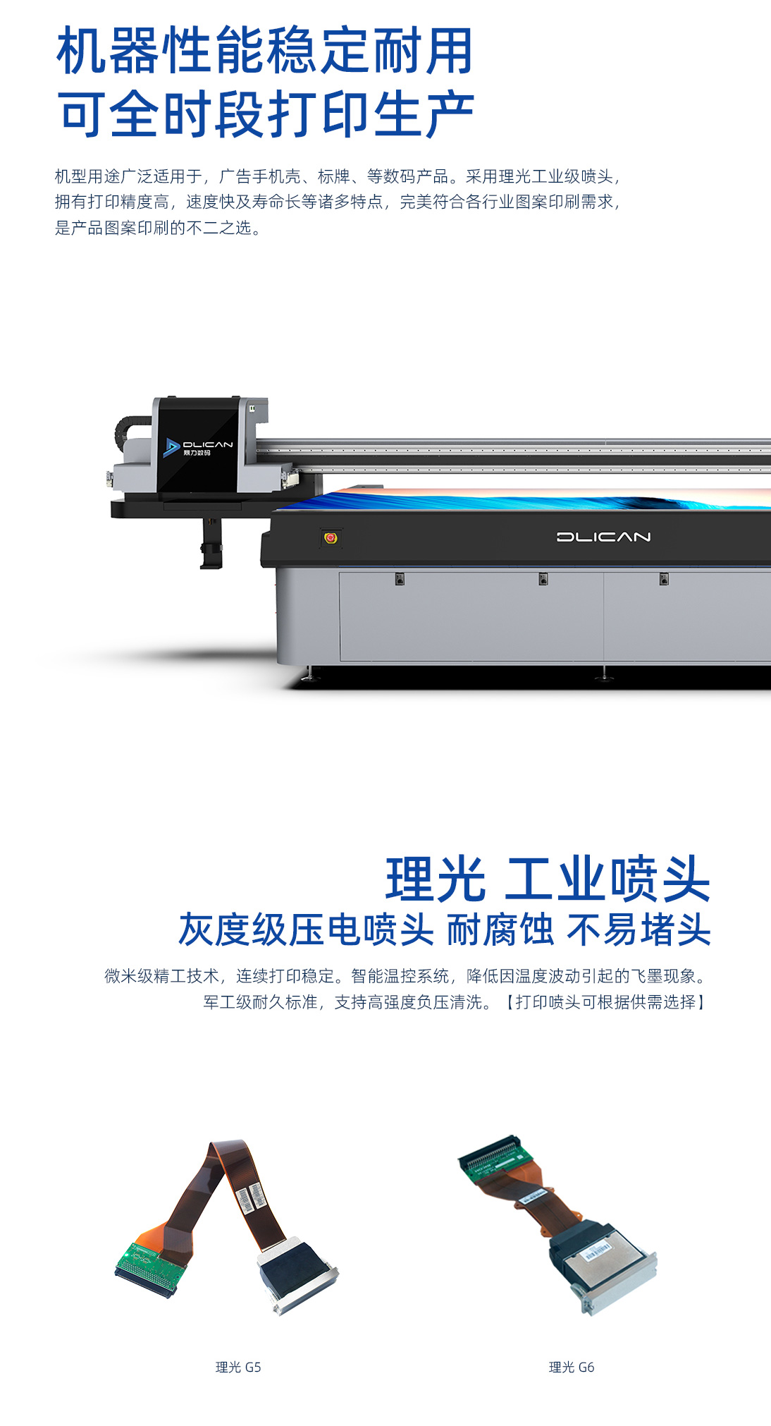 产品描述:打印尺寸3.2m*2.0m,可定制双CMYK喷头,打印速度提升75平米/小时,高效打印,支持多喷头及油墨定制方案,应对不同尺寸、软硬打印材质。