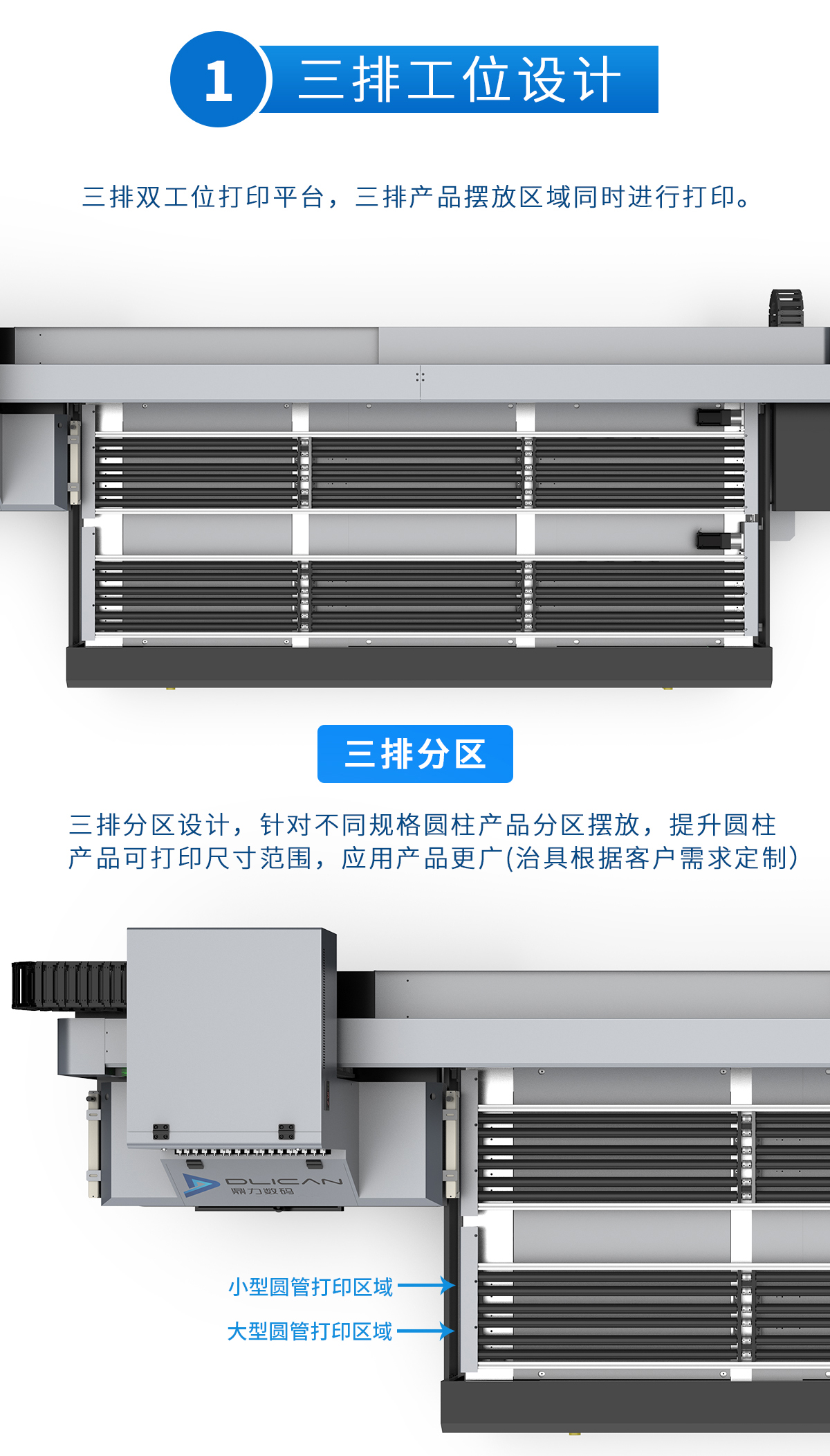 产品描述:鼎力三排双工位uv圆柱打印机可在圆柱体表面打印图案,广泛应用圆柱体,酒瓶,保温杯,金属圆管电子烟等产品